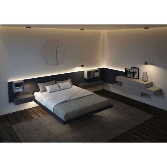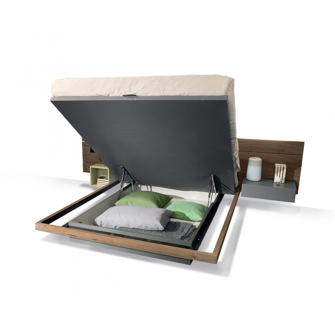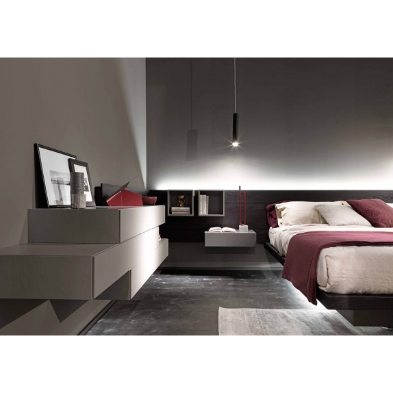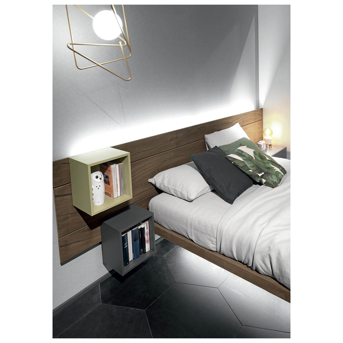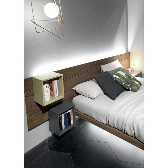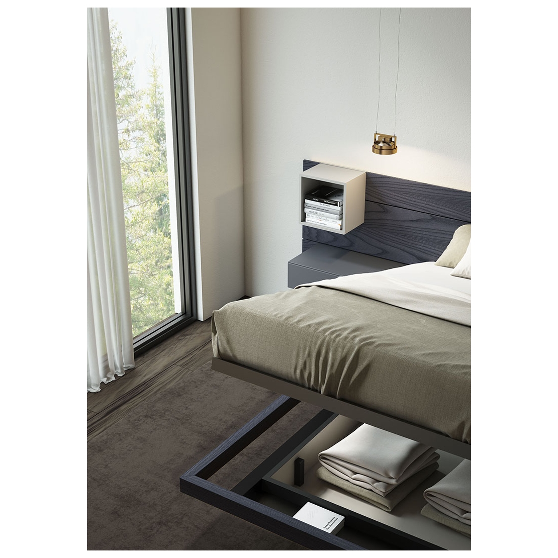 Il letto sospeso Sorvolo è il sistema letto multi accessoriato grazie a cui è possibile scegliere la propria sovrapposizione di finiture e colori. Sommier con contenitore sospeso e rientrante.