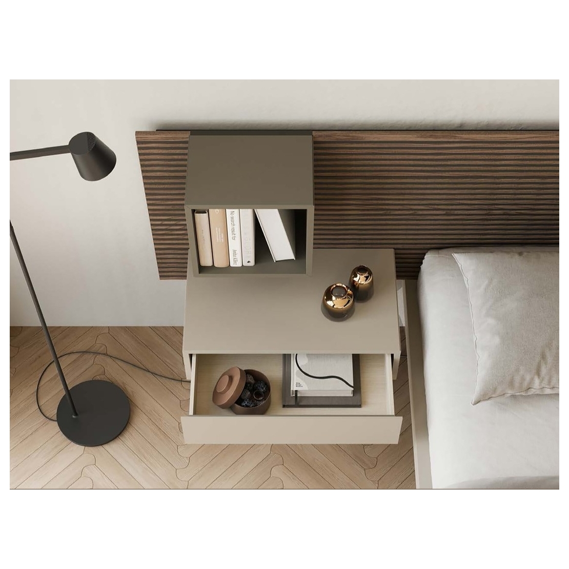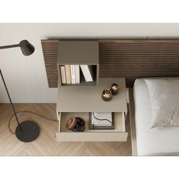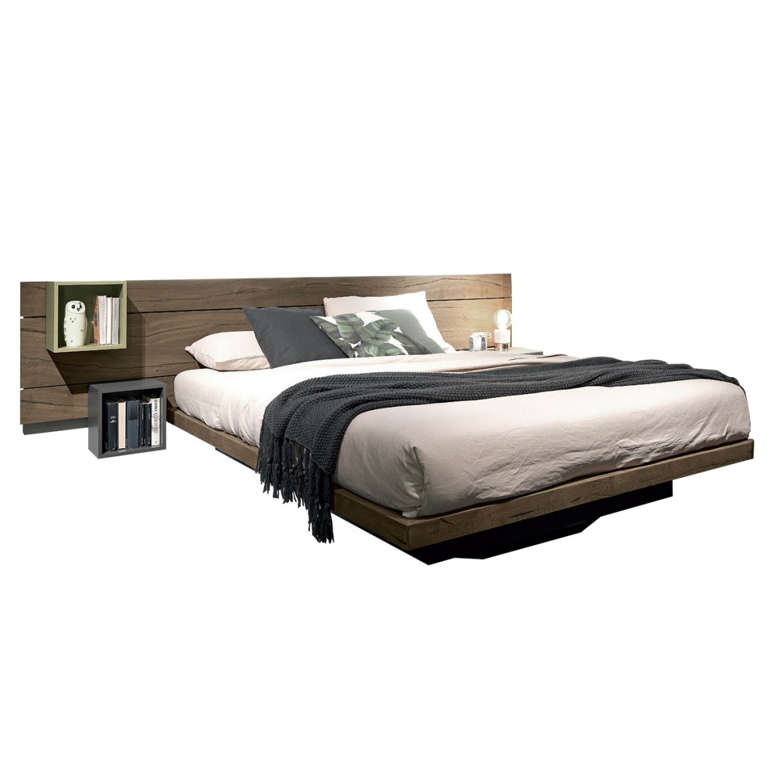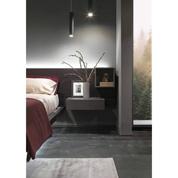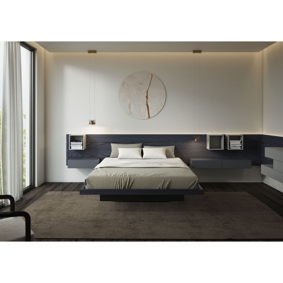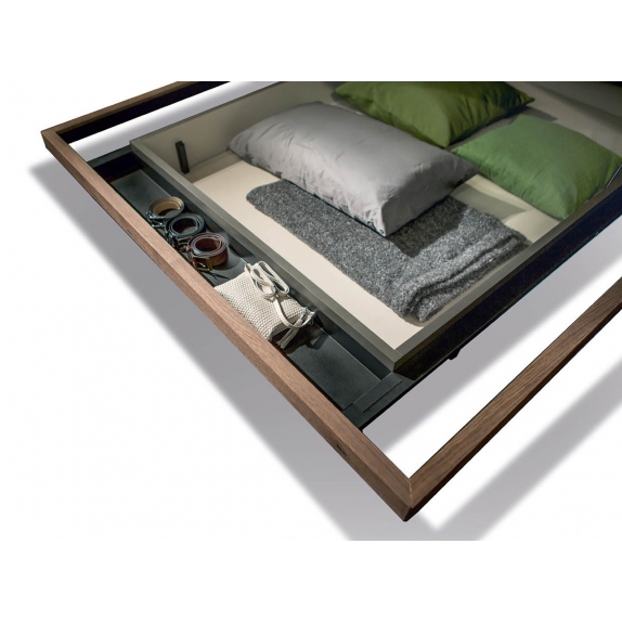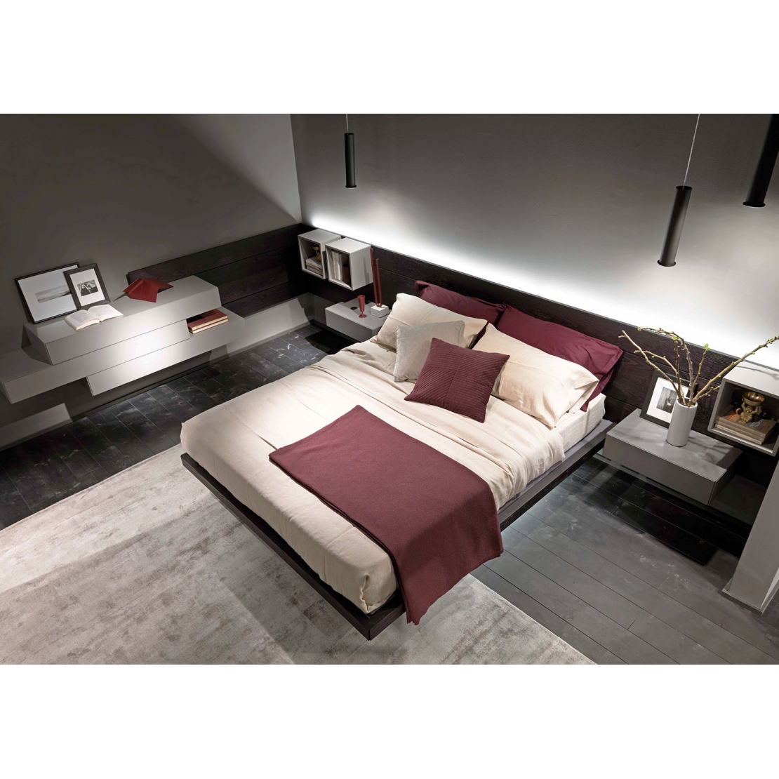 Il letto sospeso Sorvolo è il sistema letto multi accessoriato grazie a cui è possibile scegliere la propria sovrapposizione di finiture e colori. Sommier con contenitore sospeso e rientrante.