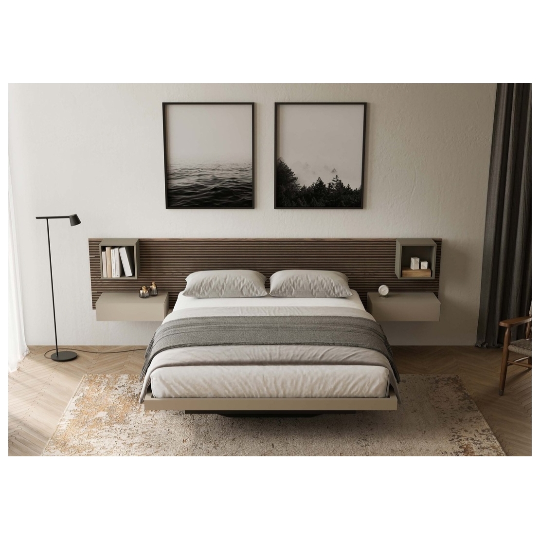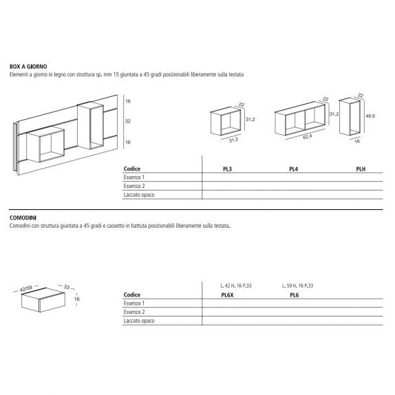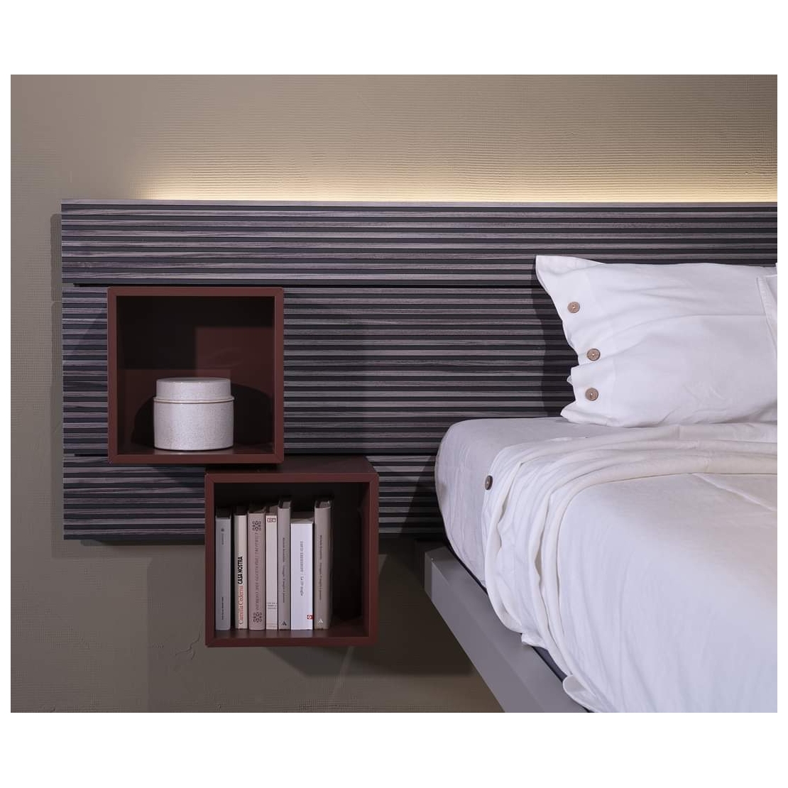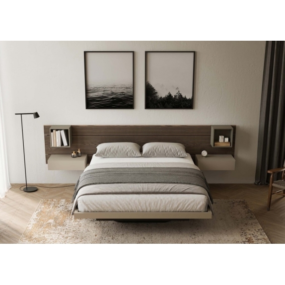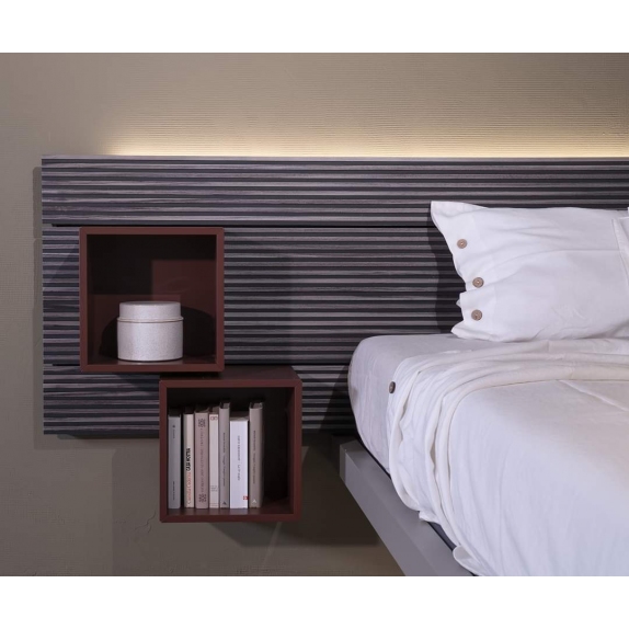 Le doghe della testata è fissata a muro mediante barra di sostegno e ganci regolabili, il sommier risulta indipendente dalla testata stessa e può essere posizionato liberamente con fissaggio a muro dal lato testa e piede in metallo sul lato pediera.